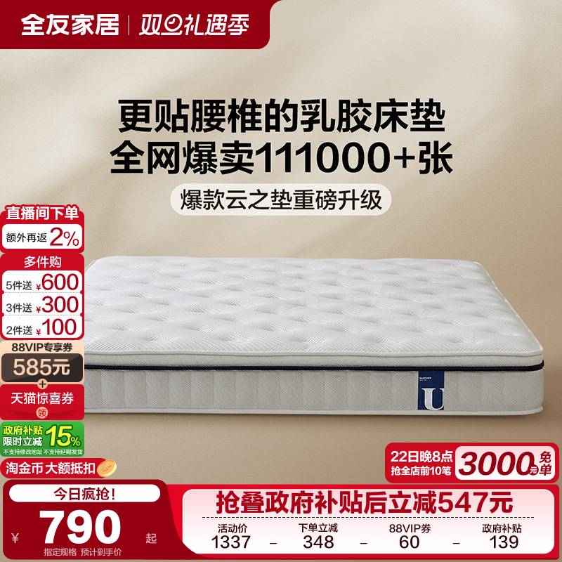 • 泡美丽»»全友家居软硬适中双面乳胶床垫家用卧室双人椰棕床垫酒店席梦思