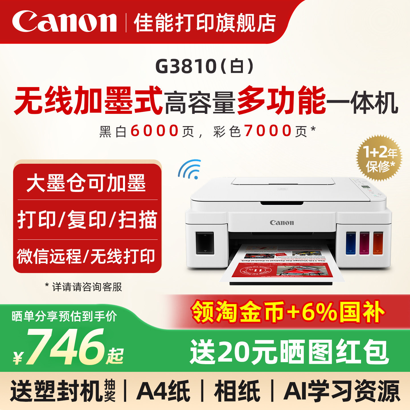 佳能G3810w无线家用小型打印机可连手机连供墨仓式彩色喷墨复印扫描一体机wif