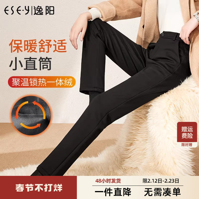 逸阳黑色加绒西装裤女2025年冬新款直筒高腰宽松哈伦烟管加厚裤子