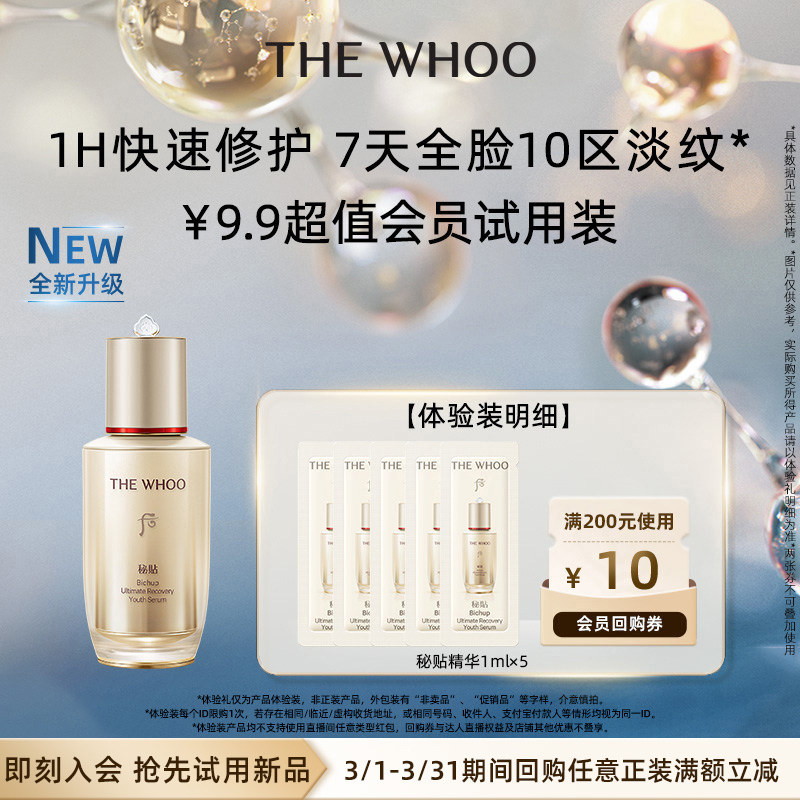 【天猫U先】Whoo后秘贴精华1ml*5非卖品 抗皱修护