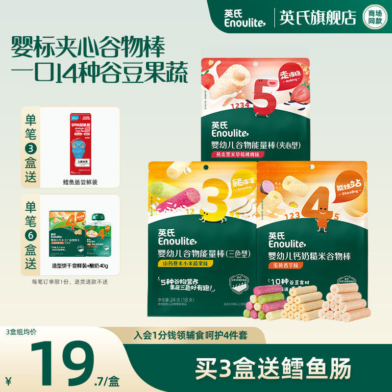 英氏婴幼儿钙奶谷物棒 宝宝米饼无添加儿童零食饼干1岁送婴儿零食