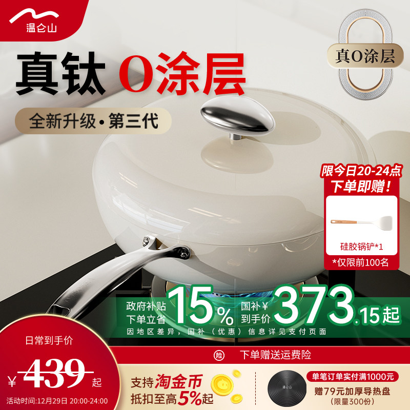 【新品】Velosan温仑山无涂层不粘锅钛炒锅家用炒菜锅陶瓷鹅卵石