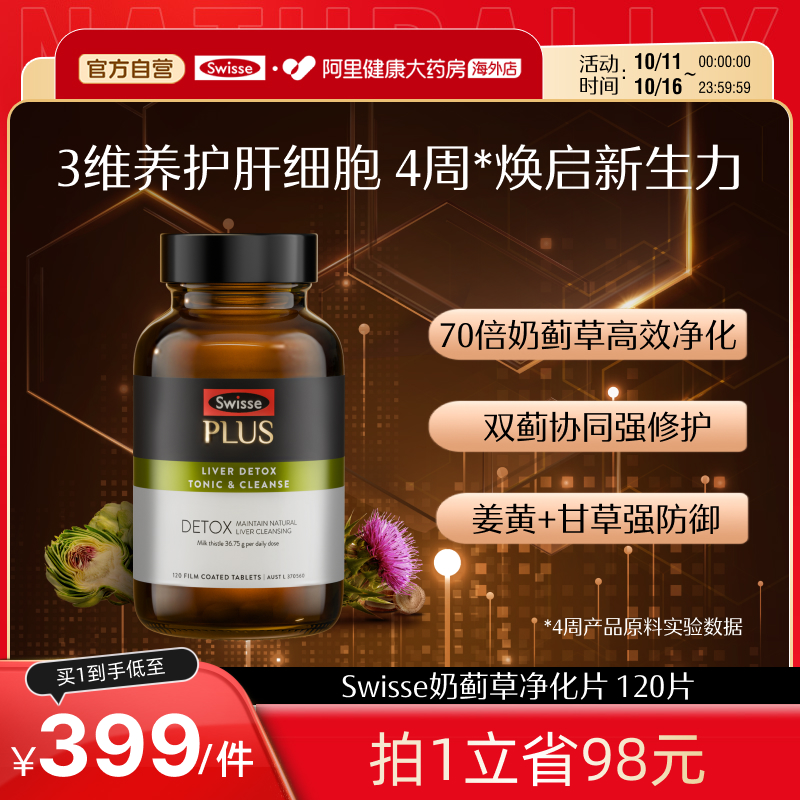SwissePlus斯维诗70倍高浓缩奶蓟草净化片姜黄水飞蓟熬夜解酒