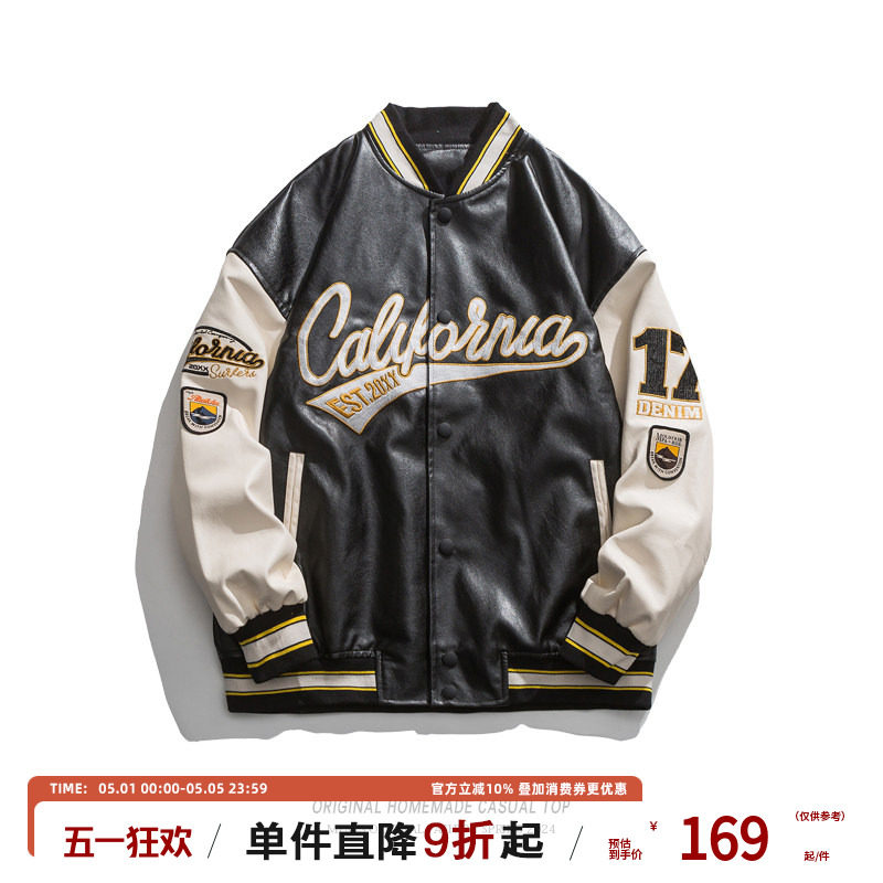 潮牌PU皮衣棒球服男春秋季宽松情侣飞行员夹克男街头情侣休闲外套