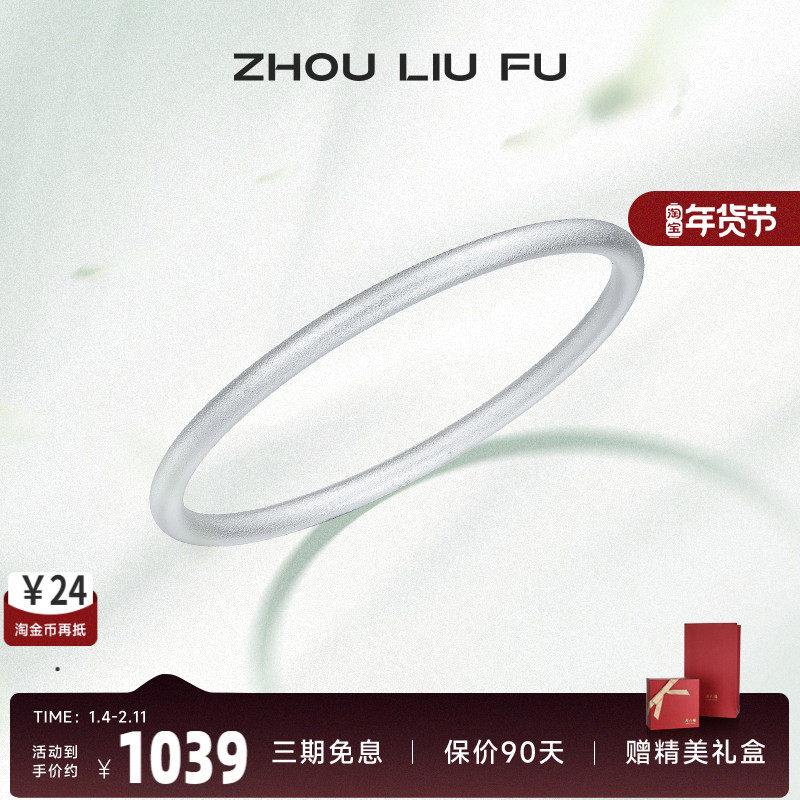 • 泡美丽»»周六福S999足银手镯古法纯银镯子女实心闭口素圈沙面送女友礼物