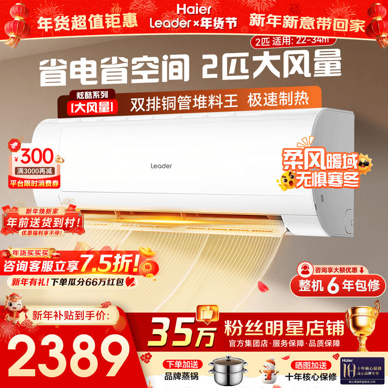 国补15%海尔空调3匹2匹统帅大挂机家用冷暖客厅一级能效旗舰店