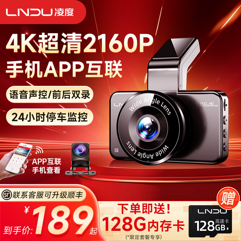 • 泡美丽»»凌度行车记录仪4K超高清夜视2025新款免走线汽车前后双摄360全景