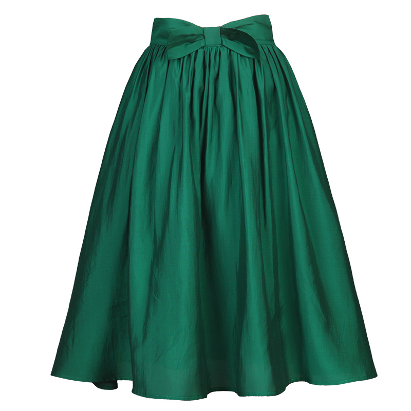 JUNGLE ME裙子女夏中长款薄款复古高腰伞裙a字百褶裙绿色半身裙