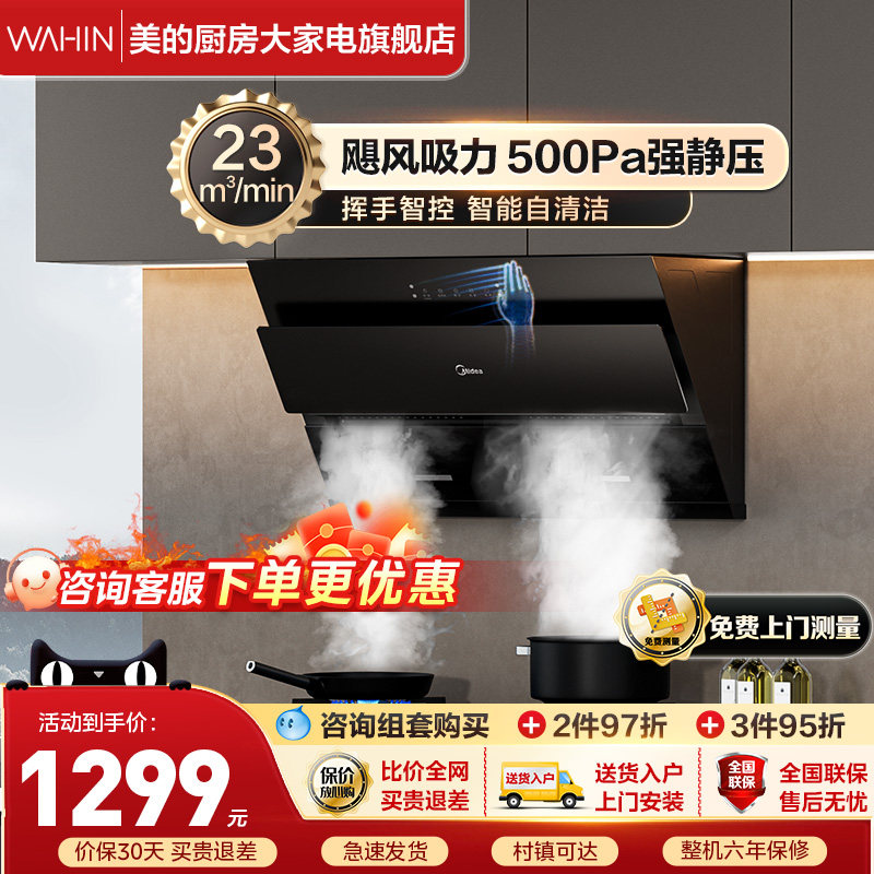 美的小型家用厨房大吸力免拆洗排抽油烟机J25Spro侧吸官方正品