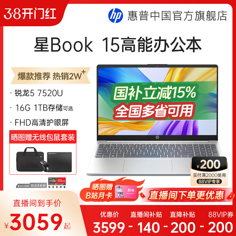 【国家补贴15%】HP/惠普可选星Book 14/15锐龙 7000系处理器笔记