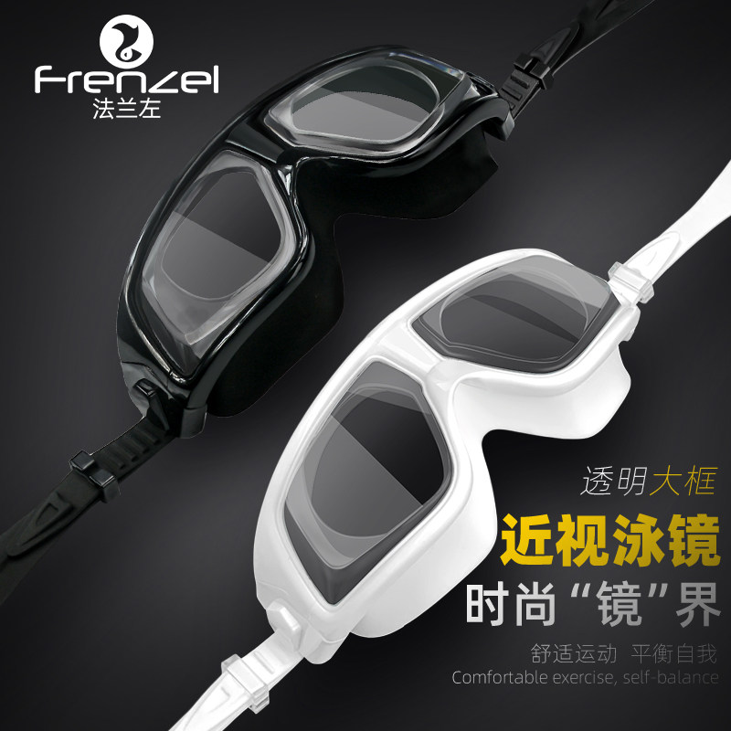 • 泡美丽»»FRENZEL法兰左近视泳镜高清大框电镀防水防雾男女成人海滩游泳镜
