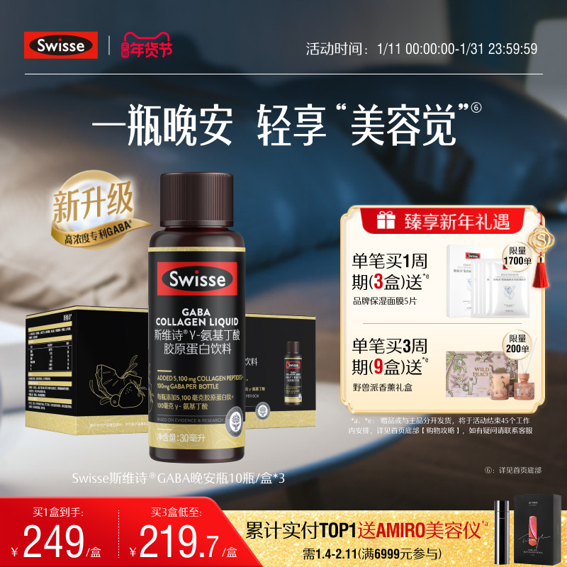 【热巴推荐】Swisse斯维诗GABA晚安瓶胶原蛋白肽玻尿酸保健品饮品