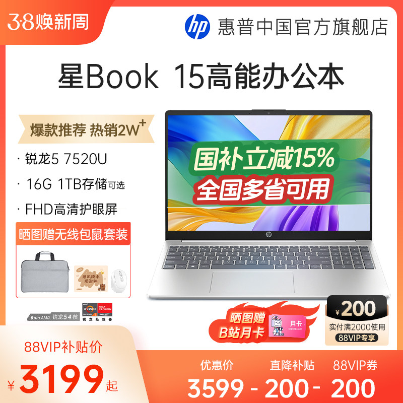 【国家补贴15%】HP/惠普可选星Book 14/15锐龙 7000系处理器笔记