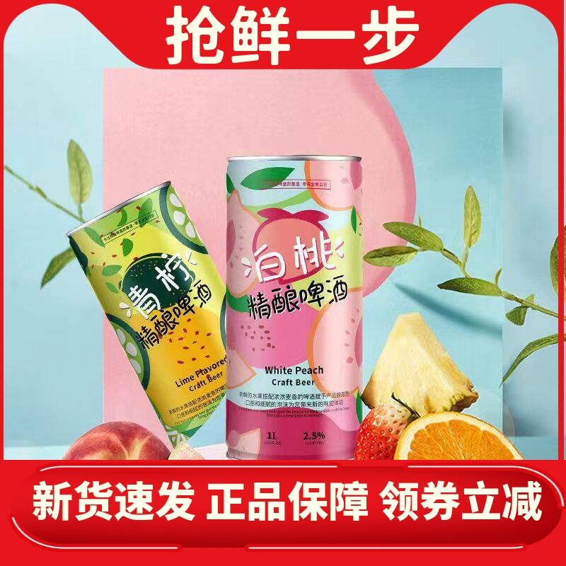 • 泡美丽»»女士果味精酿白桃青柠荔枝海盐百香果啤酒1L*1/2桶装果酒整箱清仓