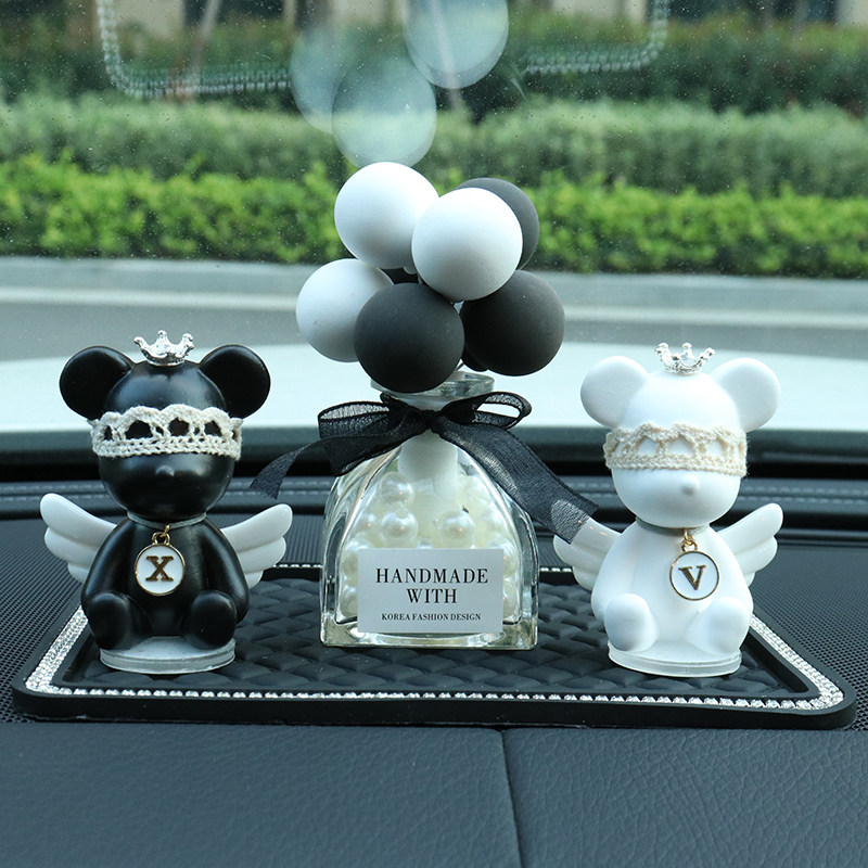 车载字母小熊摆件香水创意汽车中控台香薰车内装饰用品车上饰品女