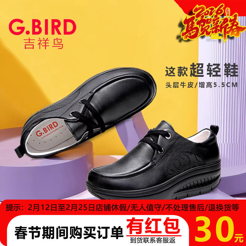 吉祥鸟超轻女鞋新款真皮休闲百搭摇摇厚底松糕系带舒适健步鞋1008