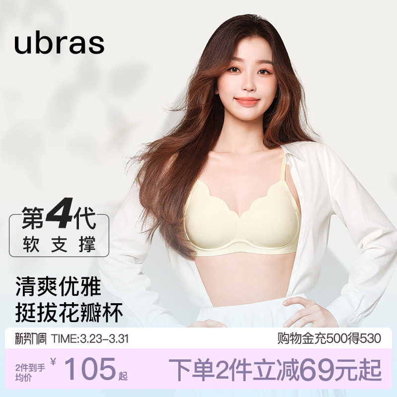 虞书欣同款ubras小花瓣杯内衣薄款小胸聚拢性感纯欲无痕文胸罩女