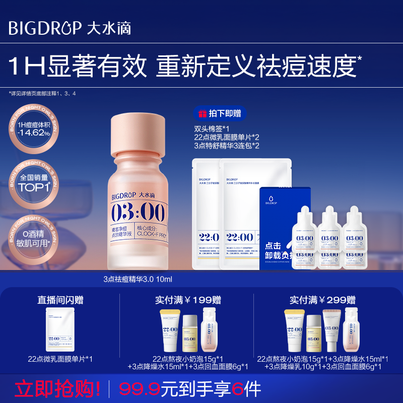 大水滴3点祛痘精华3.0 祛痘淡印救急瘪痘青少年去痘净痘淡化红印