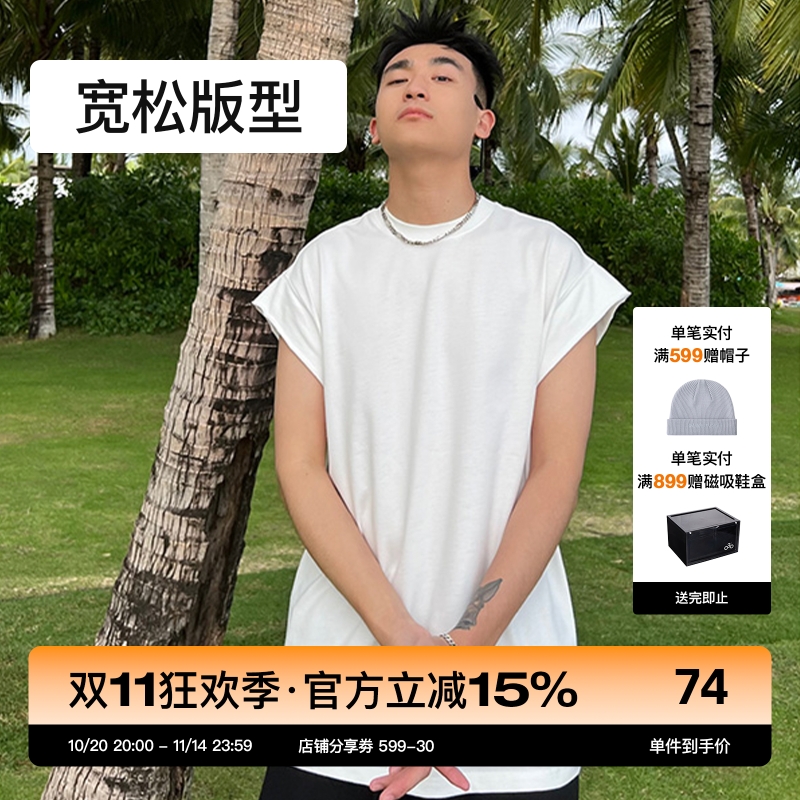 SANBAI 叁佰男士坎肩背心夏季户外休闲运动马甲宽松纯棉无袖T恤潮