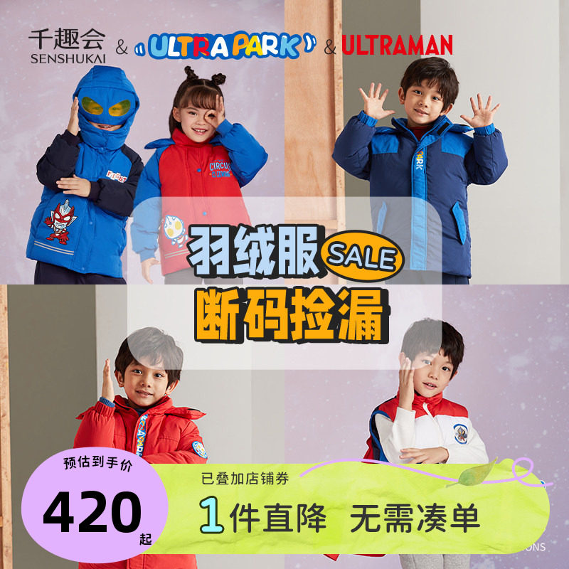 【超值断码清仓】千趣会儿童奥特曼联名男女童90绒保暖羽绒服