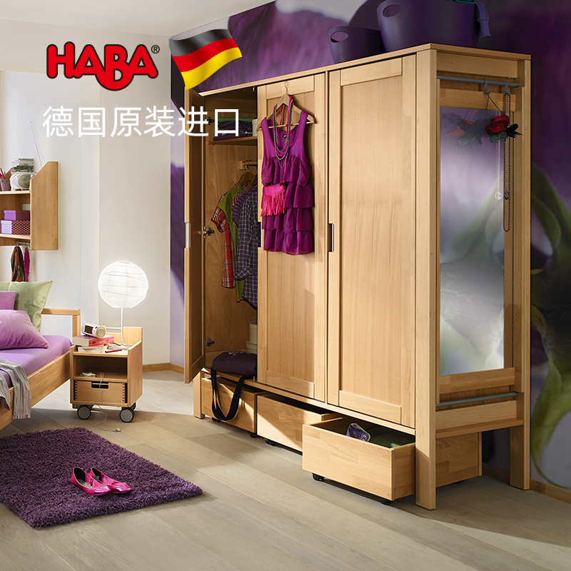 HABA德国原装进口三门衣柜实木衣柜儿童环保衣柜儿童家具大衣柜