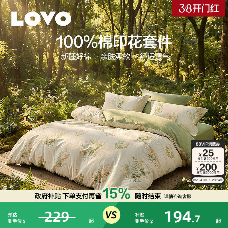 罗莱家纺LOVO乐蜗床单床上四件套床品100棉全棉纯棉被套学生宿舍