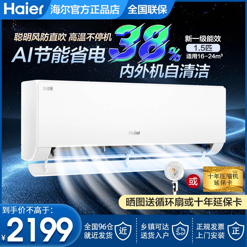 海尔空调1.5匹一级能效家用大1p变频冷暖壁挂式LGA官方E1PLUS挂机