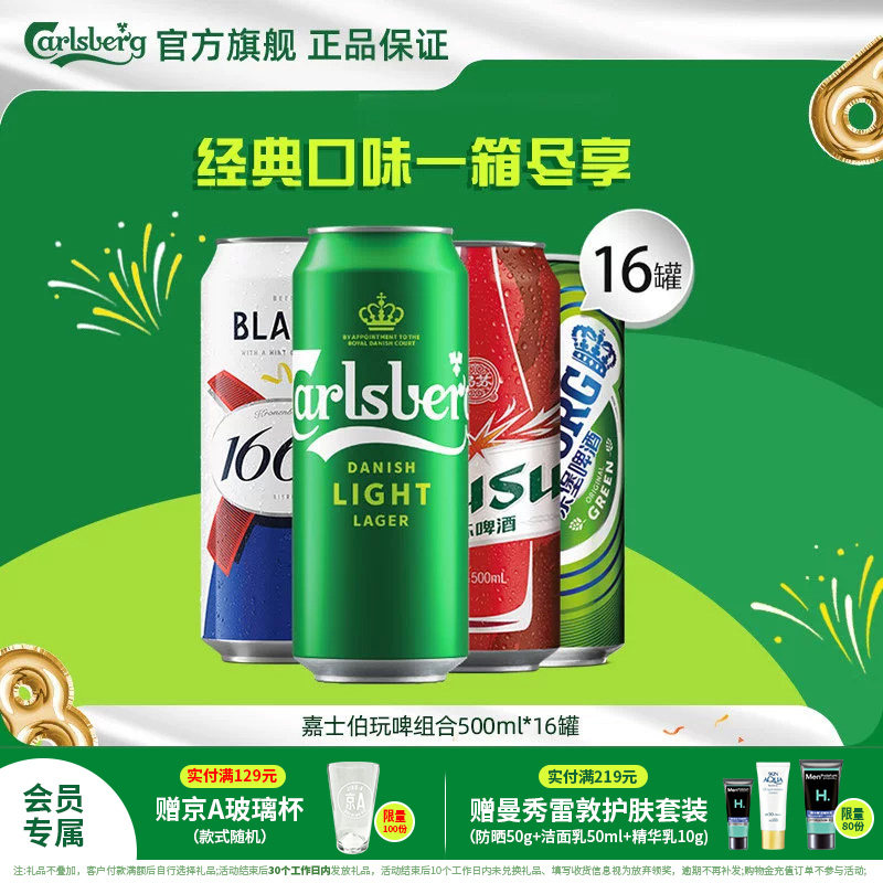 【非原箱】嘉士伯啤酒乌苏/特醇/1664/乐堡500ml*16罐组合非原箱