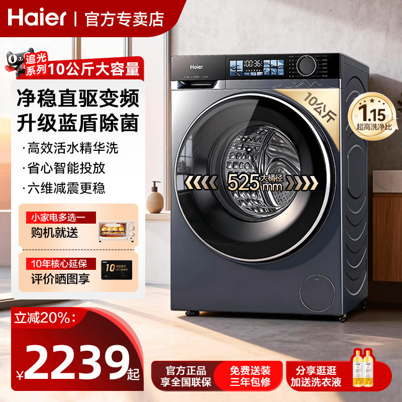 【云溪4.0】海尔直驱精华洗37E滚筒洗衣机10KG全自动家用洗烘一体