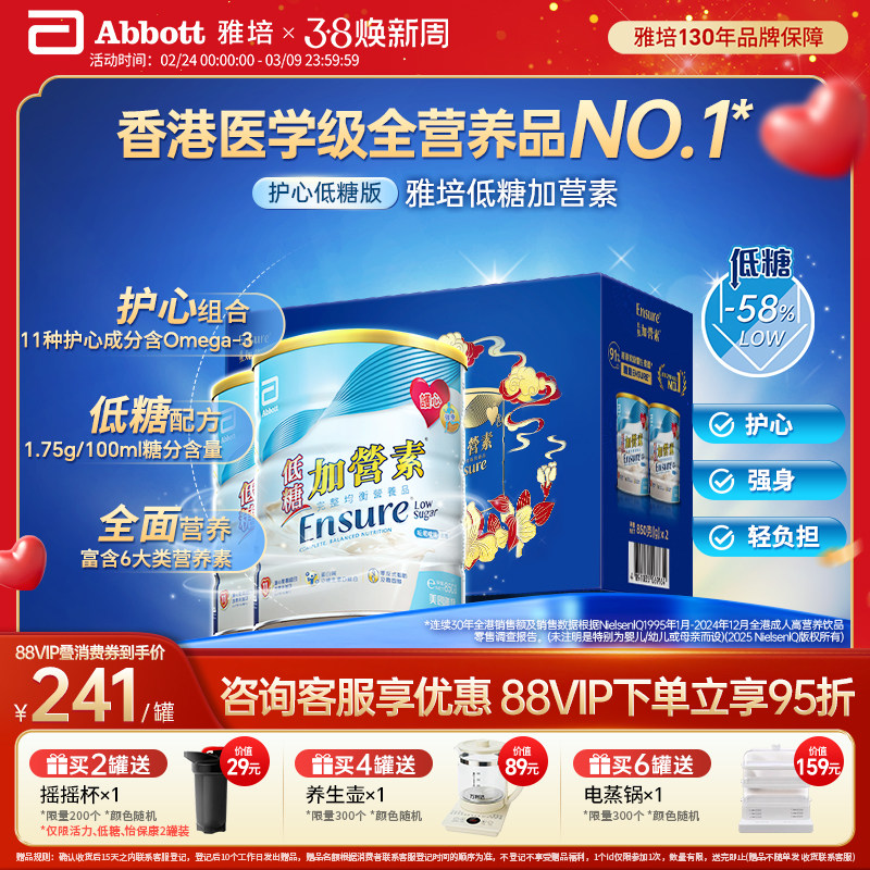 雅培ensure港版低糖新年礼盒加营素高钙蛋白奶粉850g【官方正品】