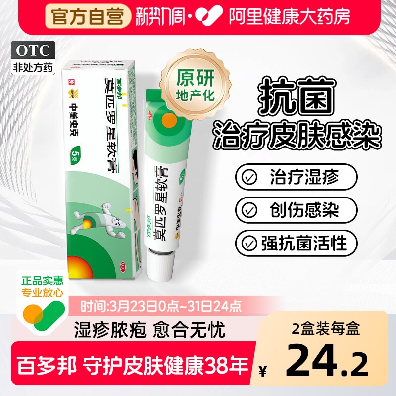 百多邦莫匹罗星软膏正品5g湿疹毛囊炎脓疱病创伤合并感染药膏