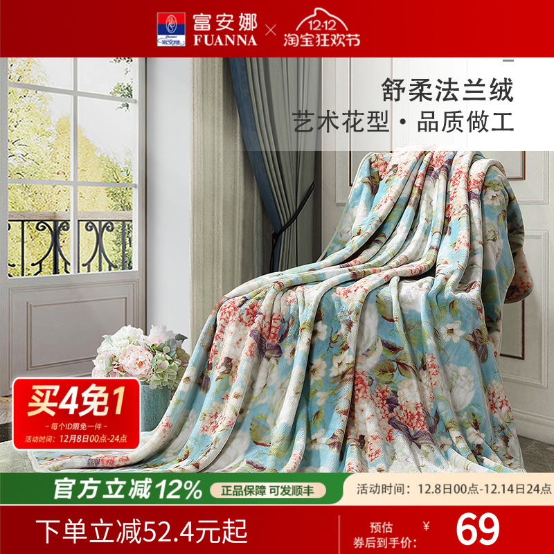 富安娜珊瑚绒法兰绒毛毯被午睡盖毯沙发毛巾盖被保暖空调毯床单