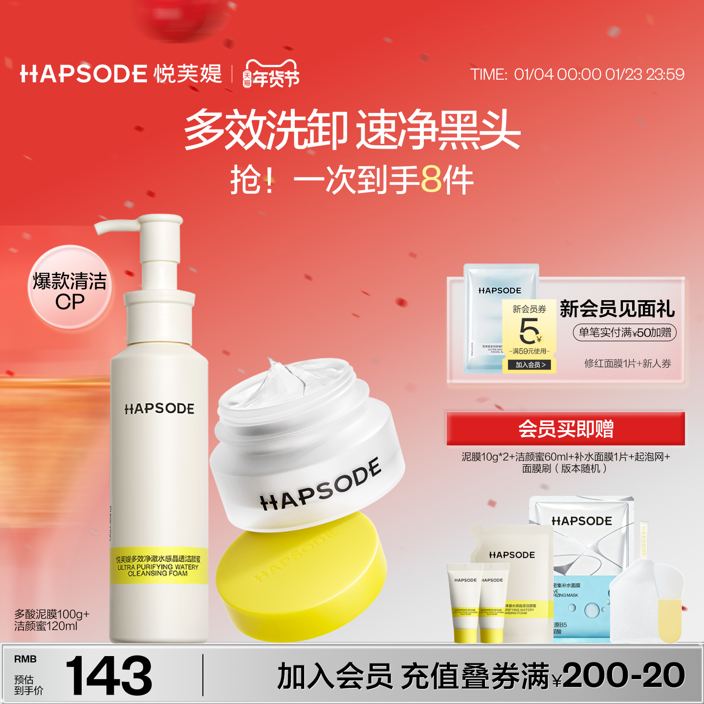 悦芙媞洁颜蜜多酸泥膜去黑头控油氨基酸洗面奶油皮深层清洁套装