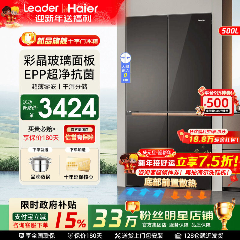 【补贴15%】海尔冰箱500L家用十字四门多门统帅529超薄零嵌旗舰店