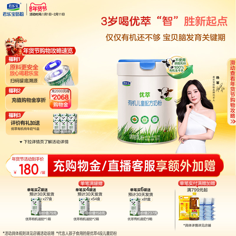 【杨幂推荐】君乐宝优萃有机4段儿童配方牛奶粉3周岁以上800g*1罐