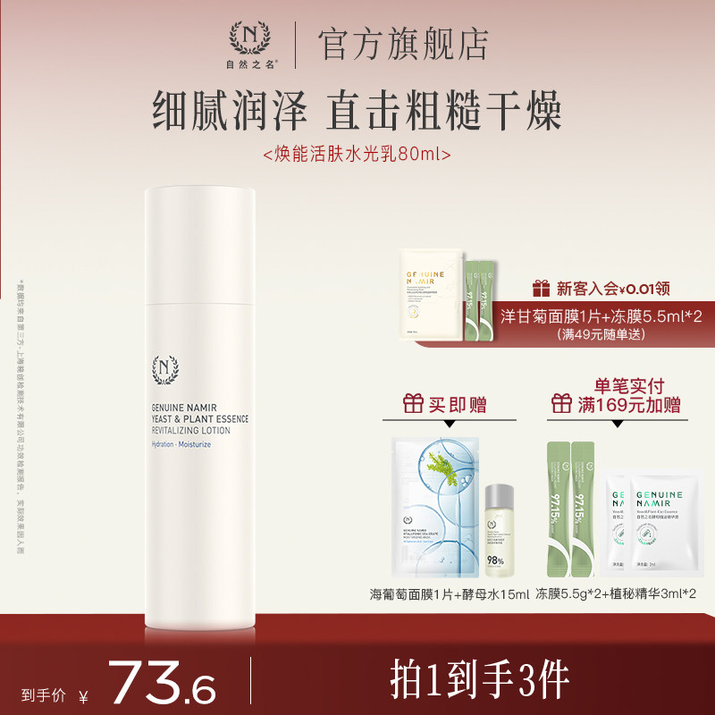 自然之名酵母植萃焕能水光乳水润保湿精华酵母水乳液男女官方正品