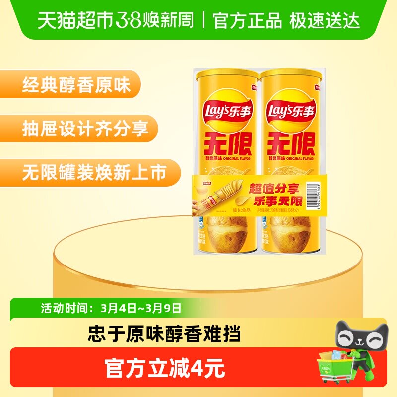 【王鹤棣推荐】乐事无限罐装薯片组合(原味/黄瓜/番茄)零食膨化