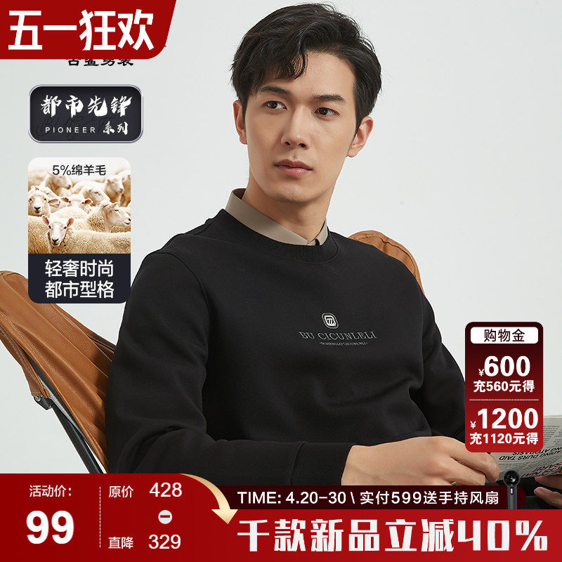 【绵羊毛卫衣】古鲨黑色长袖T恤男轻奢简约圆领修身休闲春装新