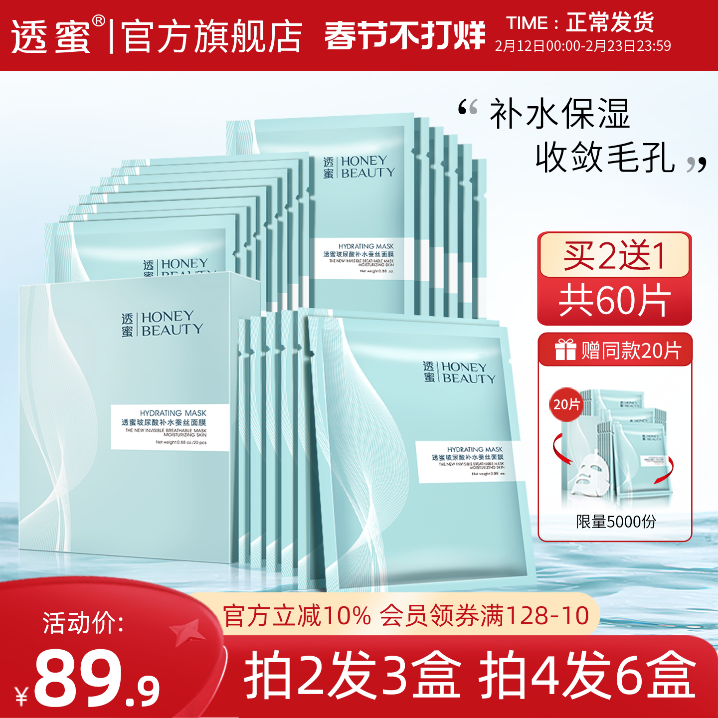 透蜜玻尿酸补水面膜保湿蚕丝收敛毛孔提亮肤色贴片式面膜旗舰店