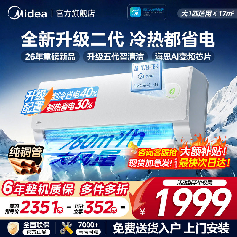 [新品]美的空调新一级能效大1.5匹1p酷省电二代家用变频冷暖挂机