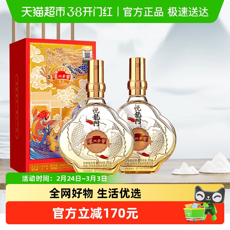 泸州老窖定制酒悦龙门52度浓香型白酒宴请送礼酒500ml*2瓶