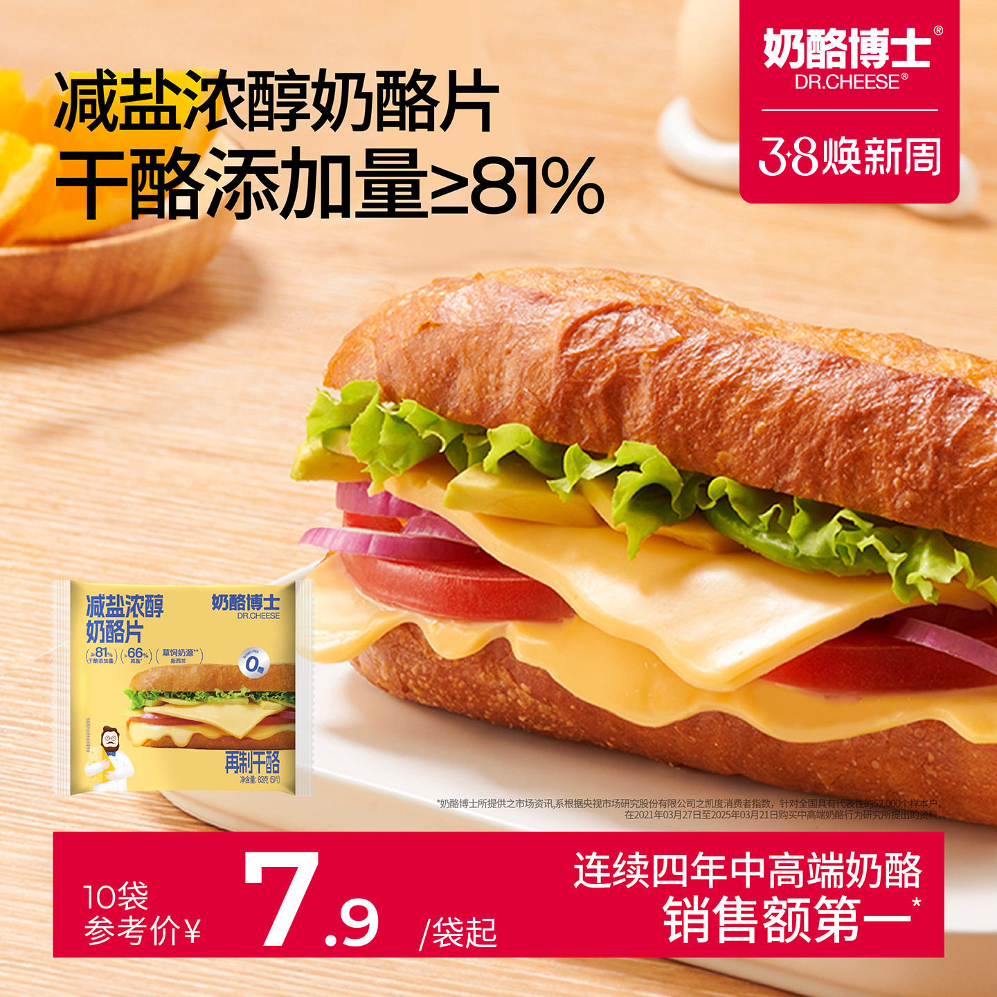 奶酪博士芝士片减盐儿童奶酪片营养早餐自制汉堡三明治烘焙专用