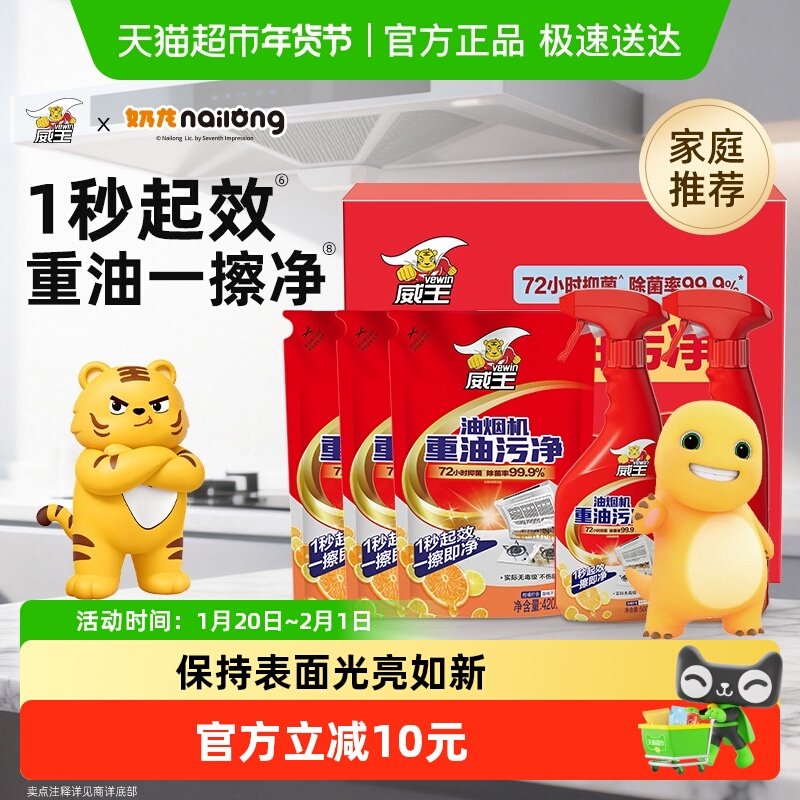 威王油烟机清洁剂去污剂500g*2瓶+420g*3袋去神器油污净清洗剂