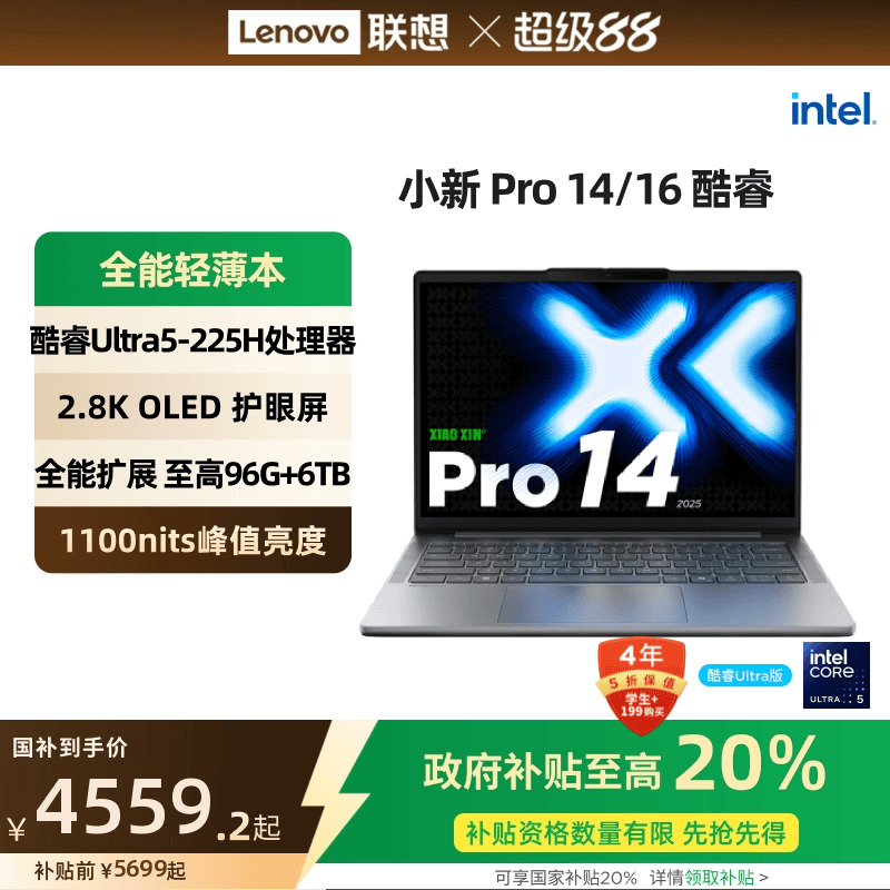 • 泡美丽»»【国家补贴20%】联想小新Pro14/Pro16 酷睿Ultra5 AI超能本可