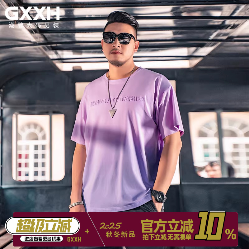 GxxH大码男装潮牌半袖胖子宽松纯色字母压花加肥加大短袖T恤220斤