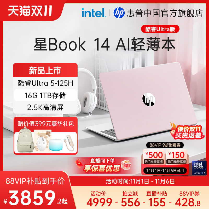【直播间限时补贴155】HP惠普可选星Book14英特尔酷睿Ultar5/7 惠