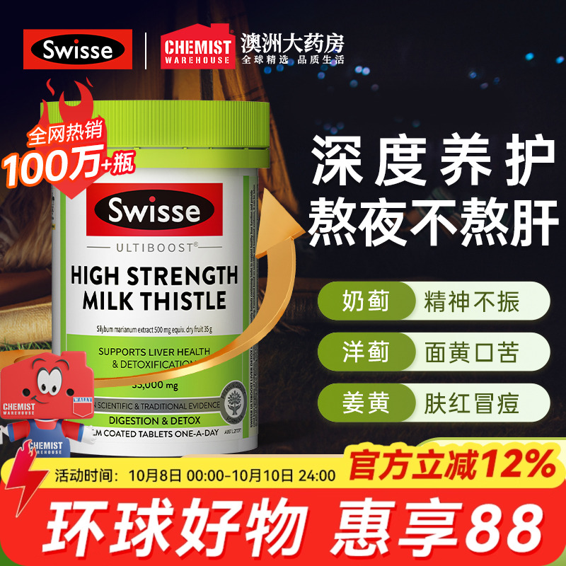 swisse护肝片正品官方旗舰店斯维诗奶蓟草蓟类水飞蓟男性解酒熬夜