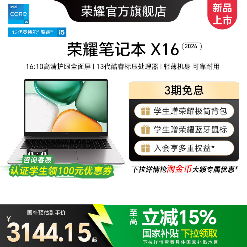 HONOR/荣耀笔记本X16 2026 战斗版13代英特尔酷睿i5处理器笔记本电