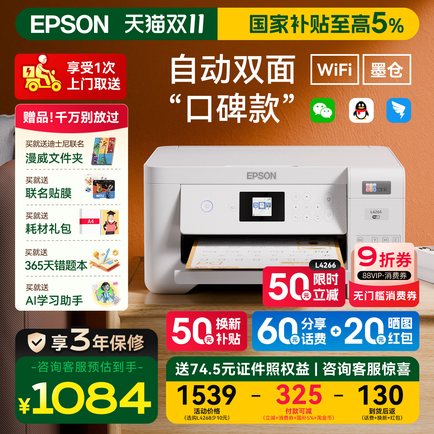 【政府补贴20%】爱普生墨仓式打印机自动双面家用小型L4266/4268/426