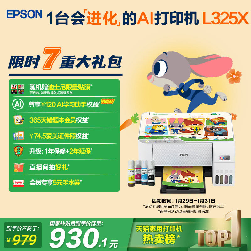 【政府补贴】爱普生L3251/L3253迪士尼系列墨仓式打印机彩色无线WIFI复